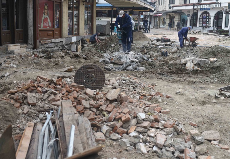 - Сешто прочитав, дека травертинот бил стар 700 години, дека се уништува споменикот... Се менуваат травертинските плочи со кои чаршијата била поплочена во 80-тите години, кои во меѓувреме ја изгубија употребната вредност. Беа со неправилна форма, дотраени, биле вадени за некоја интервенција, па повторно вратени, дупки имаше насекаде, вирови под плочите. Се менуваат со правоаголни травертински плочи, сите со идентична форма. Ќе бидат наредени на многу подобра подлога - објаснува Костов.