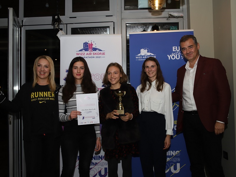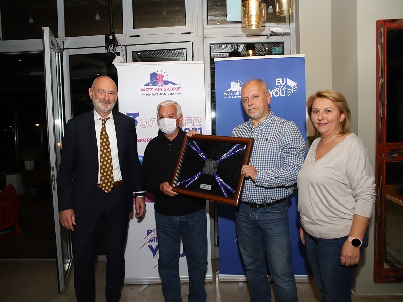 На доделувањето на наградите беше присутен и амбасадорот на Европската Унија во нашата земја, Дејвид Гир, кој лично им ги додели наградите на најдобрите од штафетниот маратон – ЕУ за спорт.