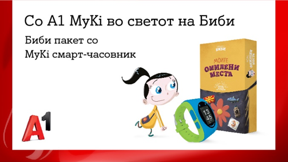 За секој родител од голема важност е да знае каде е неговото дете, дали безбедно се вратило од училиште до дома или што прави додека е само дома. Но, благодарение на новите технологии и начини на комуникација, денеска родителите може многу полесно да бидат во контакт со своите деца, да ја знаат нивната точна локација, односно да се осигураат дека нивните деца пристигнале безбедно дома. Со паметните часовници за деца, родителите добиваат можност во секој момент да знаат каде е нивното дете, па дури и да му се јават доколку има потреба. Со детскиот паметен часовник од новата генерација, MyKi, кој можете да го купите само во А1 Македонија, преку GPS-уред секогаш ќе знаете каде е Вашето дете и ќе бидете во тек со неговото движење. Детскиот паметен часовник MyKi е одлична забава за Вашето дете, но и сигурност за Вас како родител. Лесен е и едноставен за користење и може да го најдете во неколку бои. Преку SOS-копчето детето во секој момент може да Ве повика на Вашиот телефон, а бидејќи смарт-часовникот има вградено SIM-картичка, може да разговарате со детето кога и да посакате. Изберете смарт-часовник MyKi за Вашето дете и израдувајте го со специјален пакет од Светот на Биби - новата книга на Биби „Моите омилени места“ и Планер на патувања. Со овој пакет Биби ќе Ве поведе на волшебно и едукативно патување низ нашата земја.
