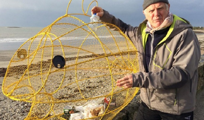 Во борбата против пластичниот отпад во морето, кој сè повеќе се зголемува, еден пензионер од Бретанија смислил брилијантен начин како да ги мотивира посетителите на плажите да ја фрлаат пластиката на едно место.