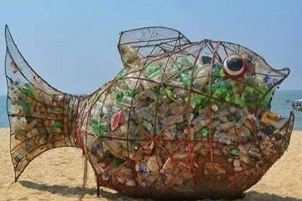 Мишел Леге од Бретанија, наместо трупање грди канти за ѓубре на плажите, направил голема скулптура од мрежа и жица во вид на риба и ставил знак на кој пишува: „Гоби сака пластика, те молам нахрани ме“.