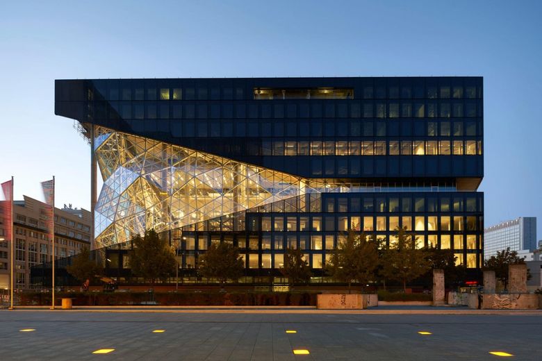 Архитектите од компанијата ОМА го потпишуваат проширувањето на берлинските простории во кои е сместена компанијата „Аксел Спрингер“. Во средиштето на зградата има 30 метри висок атриум, кој има изразено интересни подови. Станува збор за плочки од цела низа примероци и бои, а што е најинтересно, сето тоа ќе биде совршено видливо однадвор. Тоа е добар пример на ентериер кој продира во екстериерот.