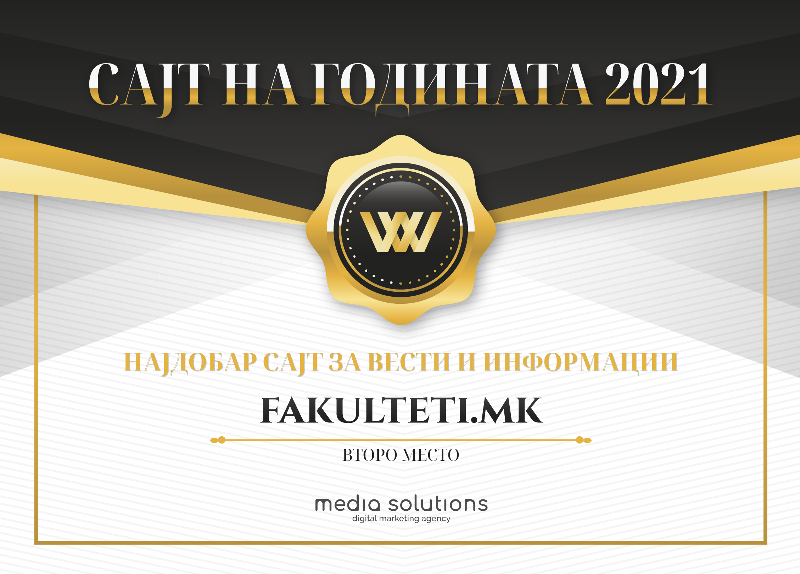 Факултети.мк го освои второто место во категоријата најдобар сајт за вести и информации, додека севкупен победник и добитник на титулата сајт на годината за 2021 е сајт од банкарскиот сектор, односно новиот редизајниран веб-сајт на Комерцијална банка.