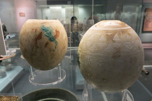 археолози и куратори детално ги анализирале украсените лушпи од јајца пронајдени во колекцијата на британскиот музеј, во кој има пет одлично зачувани јајца од ној. Сите пет јајца биле пронајдени во гробницата на Ајсис во Вулци (антички етрурски град) откриен во 1839 година од братот на Наполеон Бонапарта, принцот Лисиен.
