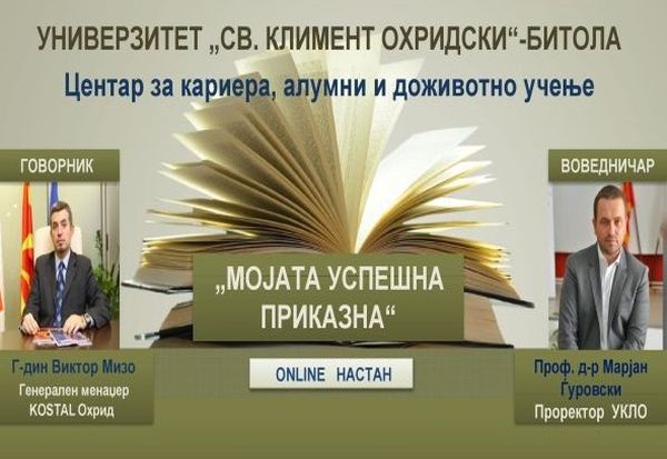 Во рамките на проектот „Мојата успешна приказна“ што го реализира Центарот за кариера, алумни и доживотно учење при УКЛО, на 14.4.2021 г. за студентите и академската заедница на УКЛО се одржа онлајн-средба со г. Виктор Мизо, генерален менаџер на „Костал“- Охрид.