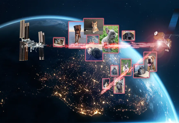 И не само мачки и кучиња, туку и птици, кокошки, крави, змии и свињи. Поконкретно, сликите и видеата беа испратени од Земјата со помош на ласер до геосинхроната орбита оддалечена 35.405 километри, каде што се наоѓа Меѓународната вселенска станица.