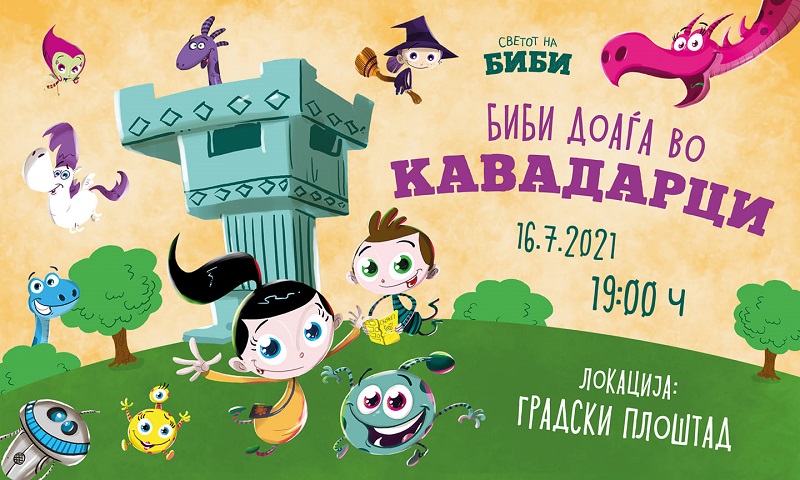Овој петок Биби доаѓа во Кавадарци. На настанот утре, 16 јули, во 19 часот, децата и нивните најблиски ќе можат да се забавуваат со „Светот на Биби“. Настанот ќе се одржи на градскиот плоштад. Децата и нивните родители, роднини и пријатели ќе играат на хитовите од првата македонска анимирана серија за деца и ќе имаат можност во живо да ја запознаат хероината Биби.