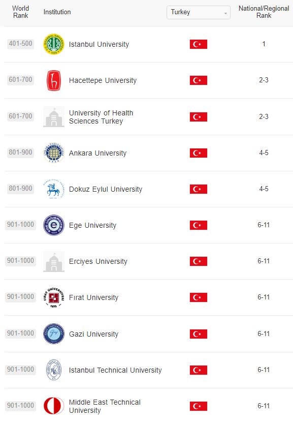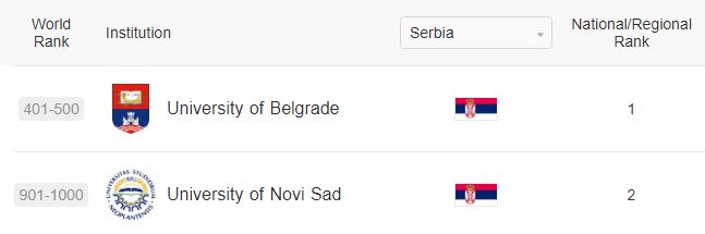 Од земјите од регионот, Универзитетот во Загреб, Хрватска, е рангиран од 401 до 500 место. Од Грција на листата има 4 универзитети, од кои најдобро рангираниот е од 301 до 400 место. На листата се најдоа и два српски универзитета, еден од Словенија и 11 од Турција.