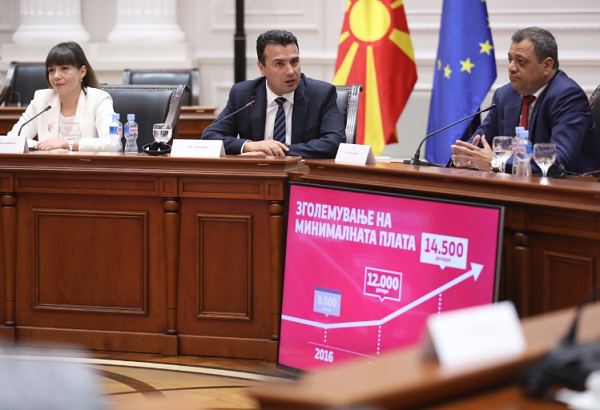 - Во 2017 година ја зголемивме минималната плата за 3.500 денари и досега изнесуваше 12.507 денари. Сега ја зголемуваме за дополнителни 2.000 денари и ќе изнесува 14.500 денари - изјави Заев.