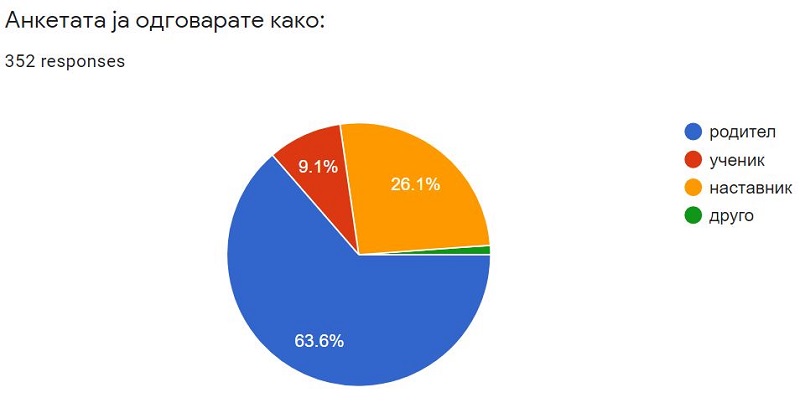 Од анкетираните читатели, најголем дел одговарале како родители – 63,3%, 26,1% се наставници, 9,1% се ученици, а 1,1% се определиле во категоријата „друго“.