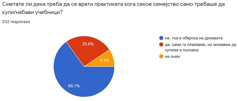 - Во државата. Бесплатно школување? Откако започнав прва година учебници секогаш фалат. Не треба да велат дека имаме бесплатно школство. Ние од средно стручно купуваме учебници секоја година - вели читател/ка.