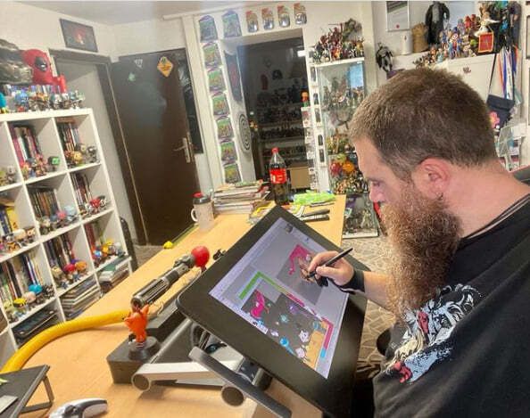 - Изложбата е посветена на моите илустрации во областа на друштвените игри, по што и најмногу ме знаат надвор, претпоставувам. Имам среќа и привилегија моментално да ме сметаат за еден од подобрите уметници на сцената иако јас лично мислам дека има далеку, далеку подобри од мене. Овие денови е фестивалот за друштвени игри во Вијана, така што во рамките на тој фестивал екипата успеа да организира и моја изложба, која ќе трае еден месец. На изложбата се изложени претежно кавери од игрите на кои сум работел и уште неколку работи кои на некаков начин, исто така, се поврзани со игрите. Стрипови, постери, илустрации за промоции и слично. Не сум сигурен колку точно дела се изложени, ама знам дека се само мал фрагмент од сето она што сум го работел и работам досега во оваа област.