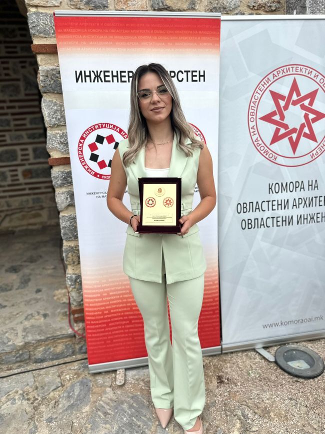 - Сакам да продолжам да се развивам во областа на графичкиот дизајн. Сметам дека „Инженерскиот прстен” е големо достигнување, но не и крајна цел, секогаш треба да се стремиме кон уште поголеми успеси бидејќи во инженерството не постојат граници. Признанието „Инженерски прстен“ нуди различни перспективи кои ќе ни помогнат за понатамошен професионален развој - нагласува Стојкоска.