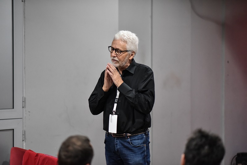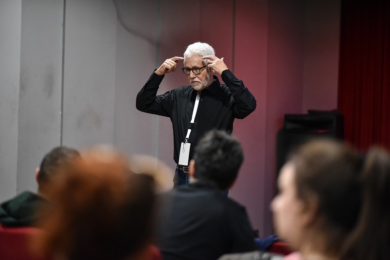 Тој ги советуваше младите филмаџии во публиката да прашуваат луѓе со искуство, да им пишуваат, да ги среќаваат.