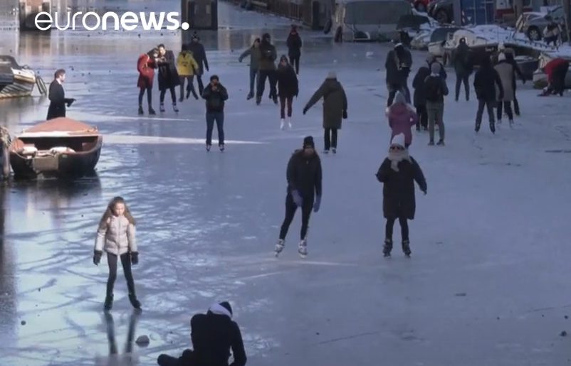 Ниските температури преовладуваа во Северна Европа минатата недела, па Холанѓаните ги искористиле познатите канали и езерата како лизгалишта.