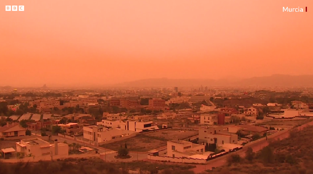 Небото над јужниот дел на Шпанија беше портокалово неделава. Регионот бил погоден од облак од прашина донесен од пустината Сахара. Облакот од Сахара поминал низ Средоземното Море.