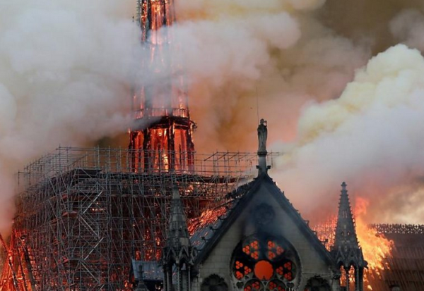 Кулата и покривот на 850-годишната готска зграда се урнаа во април 2019 година, но главната структура беше спасена, како и двете камбанарии.