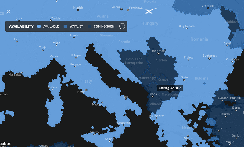 Од компанијата на Илон Маск споделија и фотографија на која може да се види достапноста на услугата. Така, може да се види дека интернетот сега е достапен во поголемиот дел од Европа, Северна Америка и во делови од Јужна Америка, Австралија и Нов Зеланд.