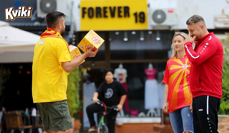 Заедно со познатиот водител Димитар Атанасовски и со младиот фудбалер Андреј Стојанов излеговме на улиците на Скопје и ги предизвикавме случајните минувачи да учествуваат на првиот Kviki фристајл фудбалски предизвик.