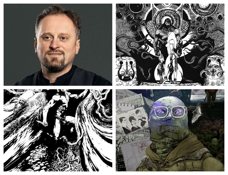- Целосно сум посветен на Ридлер, тукушто завршивме со работа на петтата, претпоследна епизода и по моето враќање од Македонија ќе започнеме со работа на последната епизода од нашата серија. Инаку, секогаш работев по неколку наслови, на пр., Конан и Тарзан беа создадени во исто време во текот на 2020 година, но сега немам време за ништо друго освен за соработка со „Ди-Си комикс“ бидејќи на овој наслов работам и на поставките, и на тушот и бојата на сите панели, додека во некои епизоди, особено оваа претстојна петта, работев дури и внесување текст. Ги правам насловните страници исто така, па затоа и да сакав, немаше да имам време за друго. Во моментов работам на многу интересна насловна за „Ди-Си“ која нема никаква врска со Ридлер, за жал, не можам да кажам што е тоа, но ќе биде изненадување.