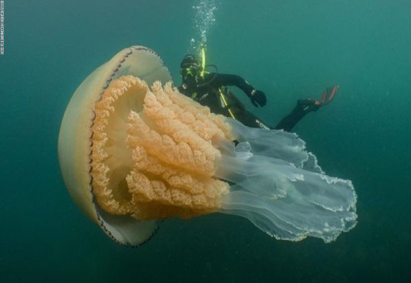 Медуза со големина на човек е забележана и снимена во морето кај градот Корнвол, Велика Британија.