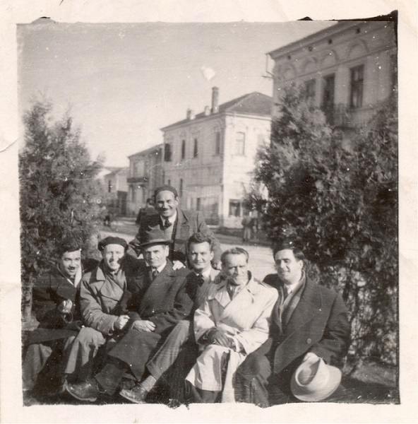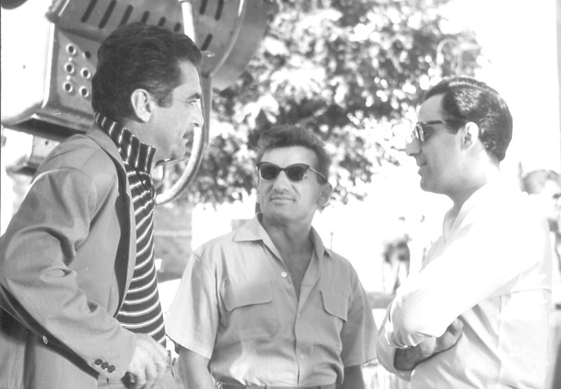 Османли (прв десно) на снимањето на „Мирно лето“, заедно со Мито Хаџивасилелв - Јасмин (средина) и актерот Илија Џувалековски
