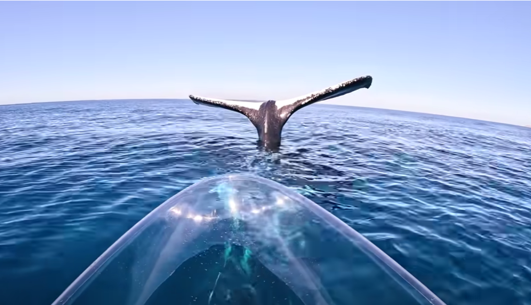 На интернет се појави вирално видео од несекојдневна средба на човек со грбав кит на кое се гледа необично однесување на животното. Видеото, објавено од Броди Мос, познат инфлуенсер од Австралија, е снимено од кајак и го документира моментот во кој опашката на грбав кит стои неподвижна над мирната површина на океанот. Мос бил изненаден од сцената што ја снимил.