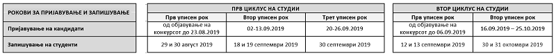 ЗА ЗАПИШУВАЊЕ НА СТУДЕНТИ НА ПРВ И ВТОР ЦИКЛУС НА СТУДИИ ВО СТУДИСКАТА 2019/2020 ГОДИНА