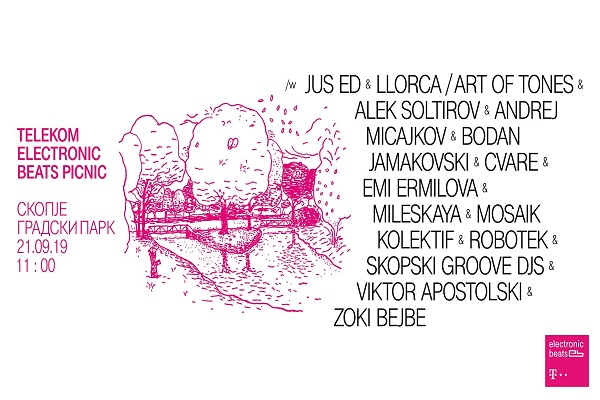 Познатата европска програма за музика и животен стил Telekom Electronic Beats месецов повторно пристигнува во нашата земја, овој пат во форма на целодневен пикник кој ќе се одржи на 21 септември во Градскиот парк. Последниот викенд од летото ќе биде одбележан со целодневна забава со почеток од 11:00 часот.