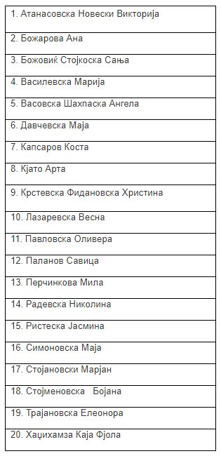 Министерството за образование и наука ја објави листата со добитници на стипендијата „Борис Трајковски“ за студии од втор циклус (двегодишни) за извршната МБА Програма на Сити колеџот, Меѓународниот факултет при Универзитетот „Шефилд“, лоциран во Солун, Грција, за академската 2020/2021 година.
