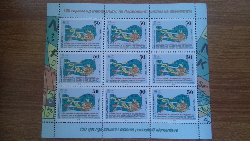 Промоција на поштенска марка по повод 150 години од Периодниот систем на елементите и одбележување 45 години од објавувањето на првиот број на списанието Macedonian Journal of Chemistry and Chemical Engineering се одржаа денеска на Институтот за хемија, на Природно-математичкиот факултет во Скопје. Во полн амфитеатар на Институтот беа претставени двете изданија – поштенската марка, дело на уметникот Лоран Куфало, и списанието во кое се застапени 12 труда од областа на хемијата и технологијата.