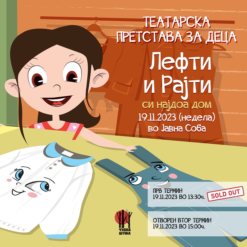 По првата распродадена театарска претстава за деца „Лефти и Рајти си најдоа дом“, закажана е и втора претстава која ќе се одвива истиот ден во 15:00 часот.