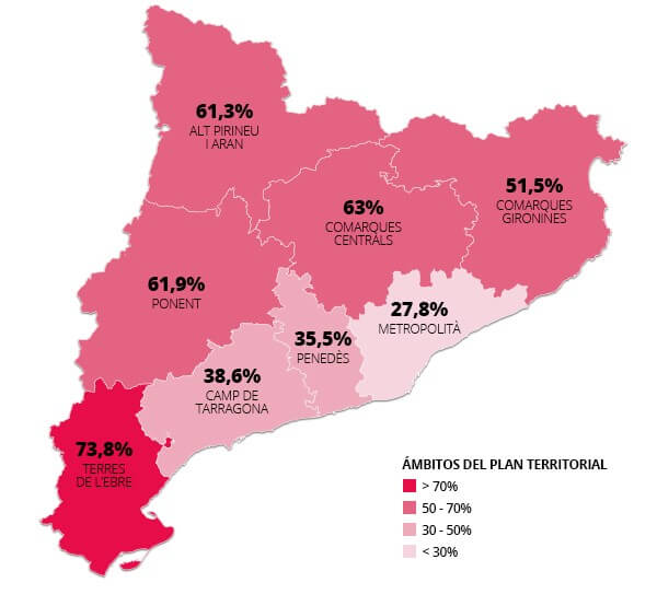 Сепак, како што е прикажано на мапата, тоа варира по регион. Областа со најмал збор говорители е во и околу Барселона, најголемиот град и главен град на Каталонија.