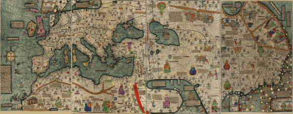 Факт 10: Каталонците се талентирани картографи. Мапата е направена од каталонскиот атлас објавен во 1375 година и едно од најважните дела во картографијата во средниот век. Интересно е затоа што југ е горе, а север е најдолу.