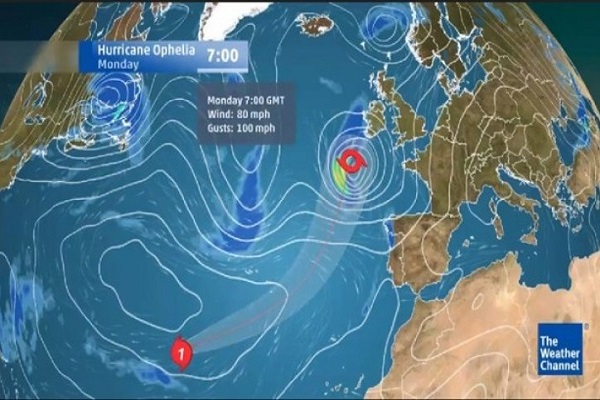 „’Офелија‘ би требало како ураган од прва категорија в недела да помине западно од Португалија, а в понеделник да се насочи накај Велика Британија. Тоа дополнително ќе ги подигне температурите во Европа, кои ќе бидат за 5 до 7 степени повисоки од нормалните“.