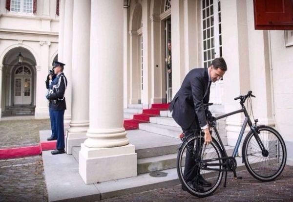 Марк Рут, кој ја води холандската влада од 2010 година, со неговиот велосипед се појавил во палатата на холандскиот крал, со кого имал состанок.