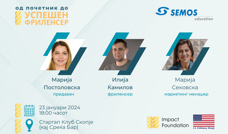 Говорници на настанот ќе бидат: Марија Постоловска (предавач во Семос едукација), Илија Ќамилов (фриленсер) и Марија Сековска (маркетинг-менаџер).