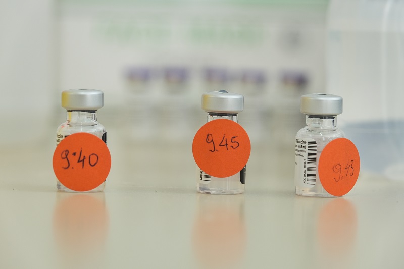 На здравствените работници им се земаат анамнестички податоци, по што следува краток преглед, па се средува административната работа во однос на закажување на следниот термин за ревакцинацијата по три недели.