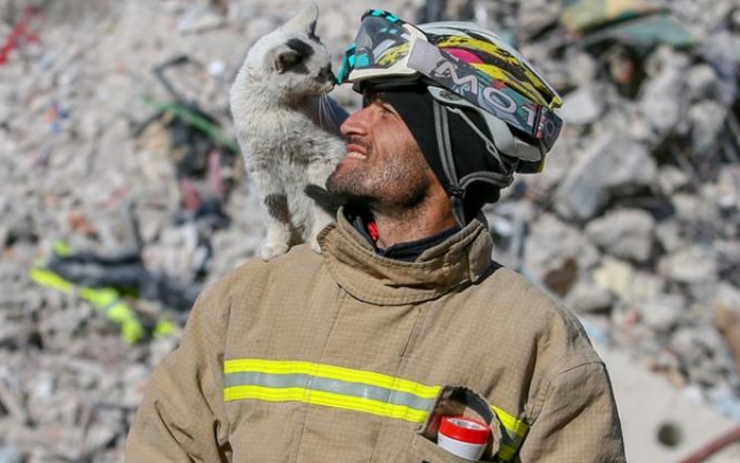 Снимка од едно маче спасено од под рушевините во Турција стана хит, а малото маче ги освои срцата на целиот свет. Имено, откако било спасено од страна на еден пожарникар, мачето не се дели од него.