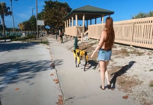 На интернет кружи видео токму од оваа девојка како го шета своето роботско куче, кое го нарекува Скрепи, по улиците на Флорида. Станува збор за истото куче-робот на „Бостон дајнемикс“, чија цена е 75.000 долари.