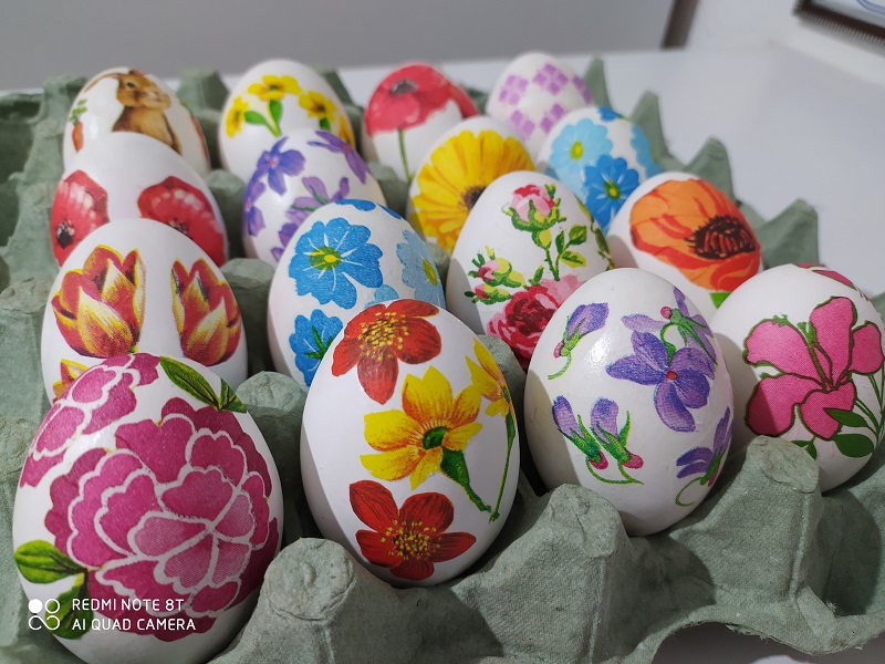 Наталија Милорадовска ни подготви весели велигденски јајца со декупаж-техника. Оваа техника не е тешка за изведба, а во изработката може да се вклучат децата на многу различни начини, зависно од возраста. Подготовката не чини многу, а секое јајце е како насликано.