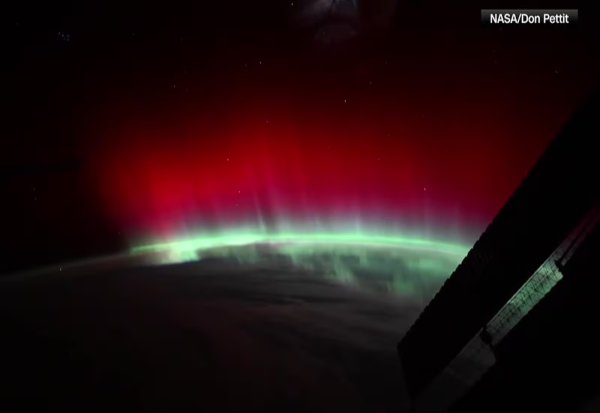 Црвени аурори, како оваа што е забележана, се појавиле само два или три пати за време на шестмесечна мисија на Меѓународната вселенска станица.