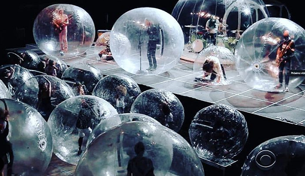 Во понеделникот бендот „Флејминг липс“ одржал концерт во сојузната американска држава Оклахома на кој сите, и изведувачите и публиката, биле во сопствени пластични меури.