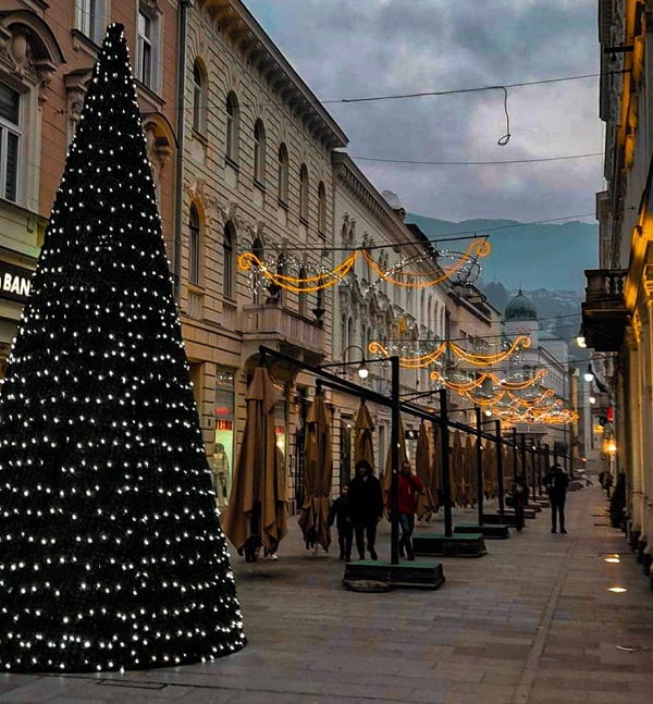 Главниот град на Босна и Херцеговина е украсен од крајот на ноември. Поставен е божиќен базар и може да се забележи светлосно украсување низ градот, а тоа го покажуваат разни фотографии од локални медиуми.