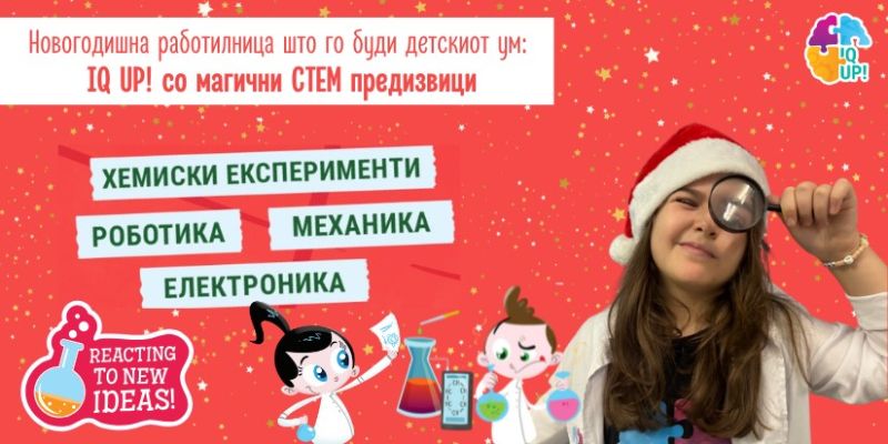 IQ UP!училишните центри низ државата ве покануваат на возбудлива новогодишна научна работилница што ги комбинира најдобрите аспекти на науката, технологијата, инженерството и математиката со празничната магија.