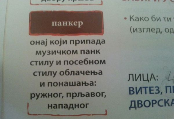 Во учебник за четврто одделение од основно училиште во Црна Гора, наречен „Магија на читањето“, авторите Наташа Боровиќ и Соња Ашанин го дефинирале поимот панкер како оној што припаѓа на музичкиот панк-стил и посебен стил на облекување и однесување: грдо, валкано, нападно.