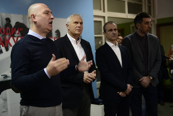 Деканот Марина, директорот на Усје, Борис Хрисафов, професорите Александар Радевски и Јован Ивановски (од лево кон десно)