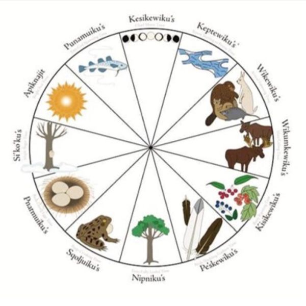 Фото: Годишниот еколошки циклус на домородното население Микмав претставен со природни настани, а 12. појавувања на месечината ги добиваат имињата од овие настани. Понекогаш е потребна 13. месечина за да се одржуваат чекорите во чекор со годишните времиња.