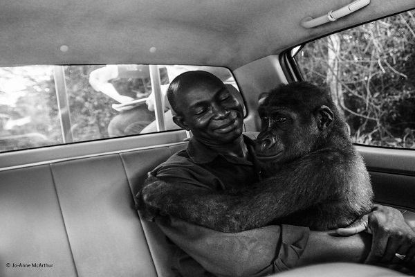 фотографија на годината. Фотографката Џо-Ен Мекартур ја снимила оваа фотографија во Камерун при преместувањето на горилата Пинкин од заточеништво во прифатилиште за животни.