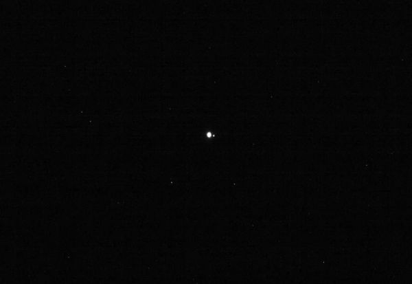 Земјата и Месечината се две светли точки што лебдат во огромната црна празнина - оваа слика била направена од вселенското летало „ОСИРИС-РЕкс“ на 17 јануари на растојание од 63,6 милиони километри.